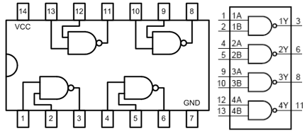 4x NAND mit je 2 Eingängen, offener Kollektor |