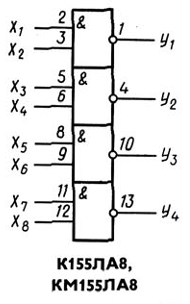 4x NAND mit je 2 Eingängen, offener Kollektor (7401) |